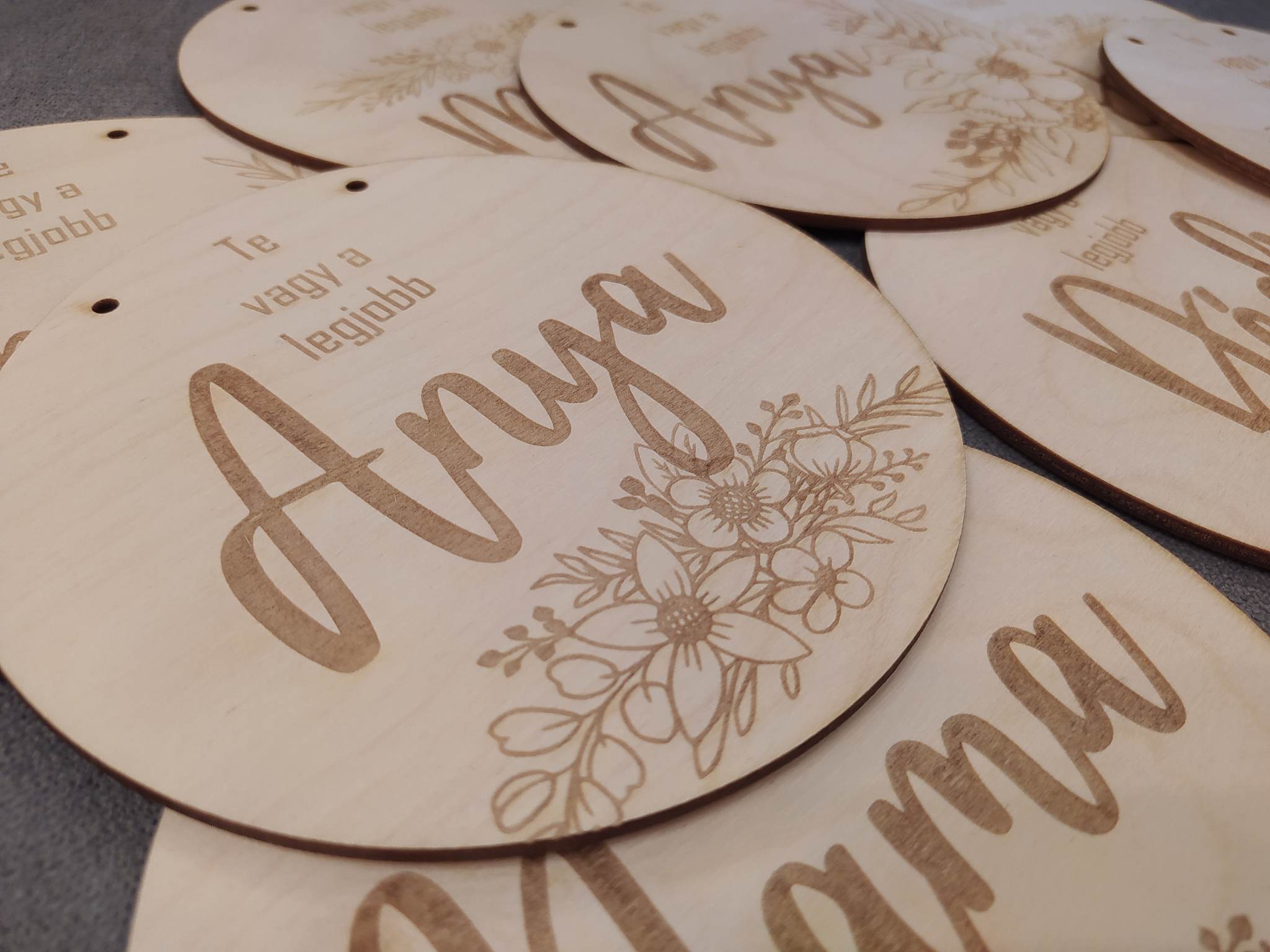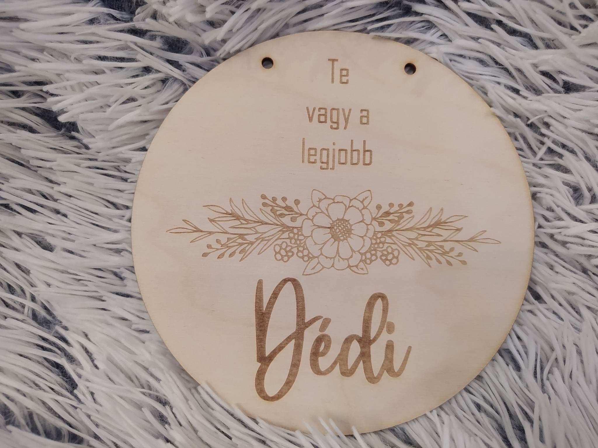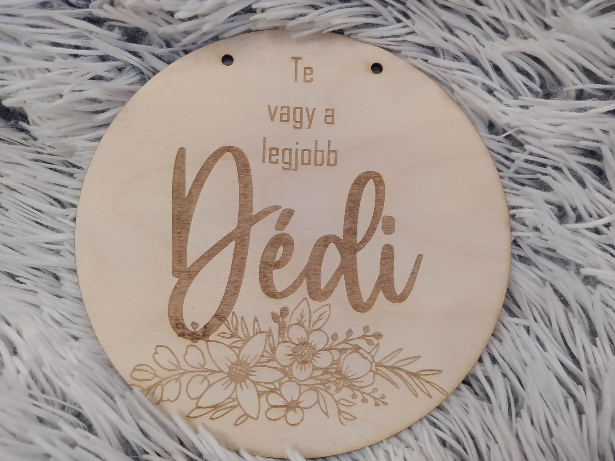 A dísz 3mm vastag nyírfalapból készült, tartalmazza a felakasztáshoz szükséges zsineget.